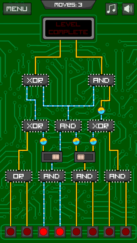 Follow the flow of the current as it passes through a field of logic gates - discover the correct combination of inputs to solve each puzzle. Complete each level in the lowest number of moves to get the best score!