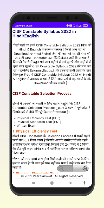 CISF Constable Exam Preparation App in Hindi Syllabus