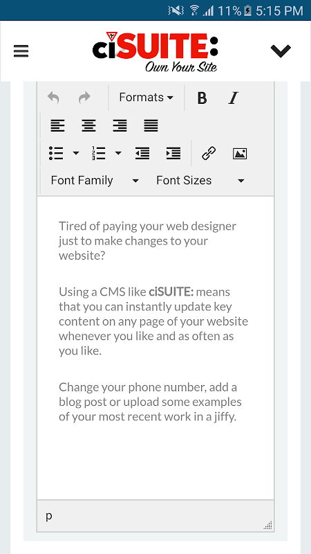 Note that there is no cost for using this app, but you do need to have a valid ciSUITE: website or online store if you want to use the app to manage your content.