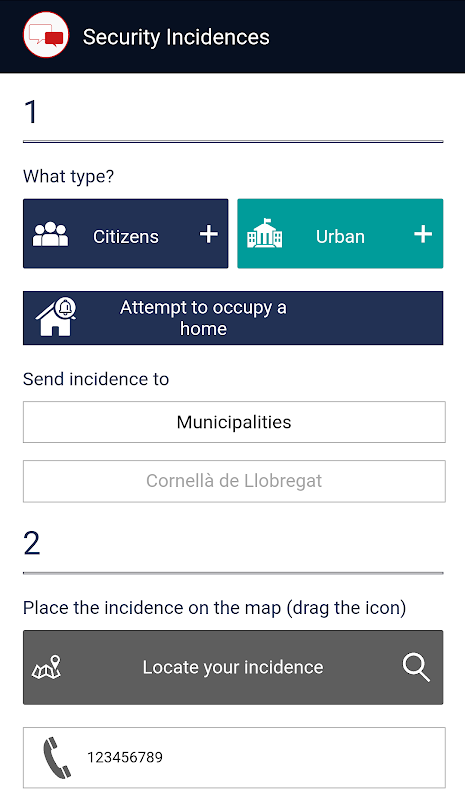 SEND INCIDENTS: To the Local Police or Guardia Urbana of the attached municipalities, with the possibility of locating it on the map and attaching documents or photographs.