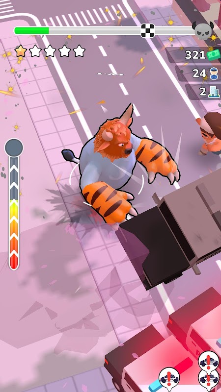Rampage through the city as a mutant animal . Survive for the highest score.