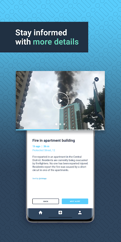 - Report incidents directly through the App, keeping your community always protected and informed.
