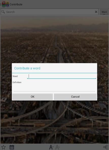 * Share a word (and it's meaning) through SMS, Facebook, Twitter, Mail