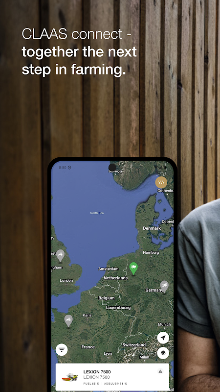 - Network your machines with the CLAAS connect app. The powerful interface gives you real-time access to performance data, service information and the location of your machines.