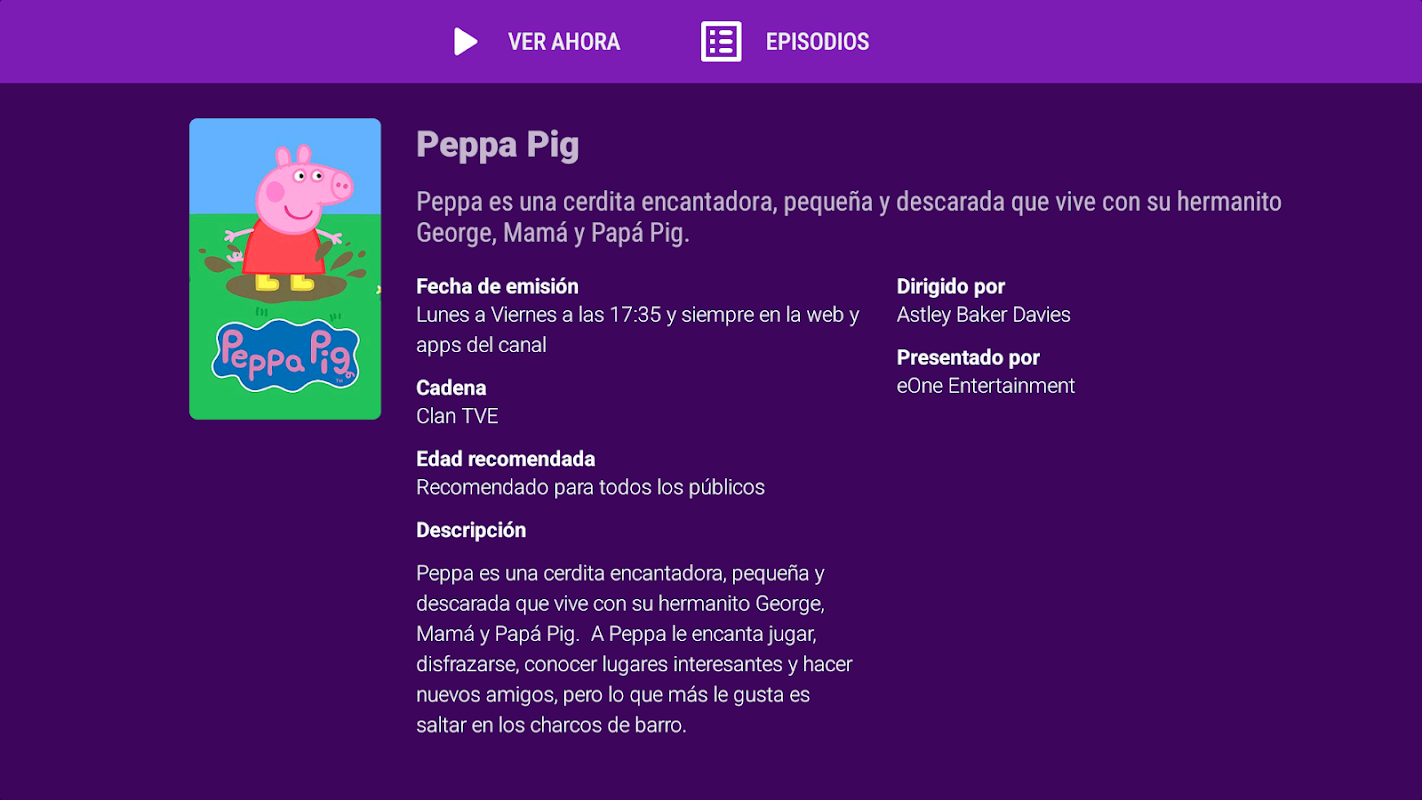 You can see the best series broadcast in Clan on your AndroidTV: SpongeBob, Peppa Pig, Bing, Henry Danger, Paw Patrol ... Hours of fun with videos for the little ones also in English.