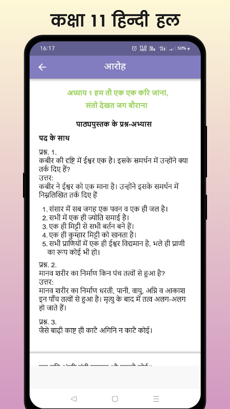 This app is aggregate of class 11 hindi Aroh and Vitan solution in most systematically way. It will help in quick revision if you liked our app. Please rate us.