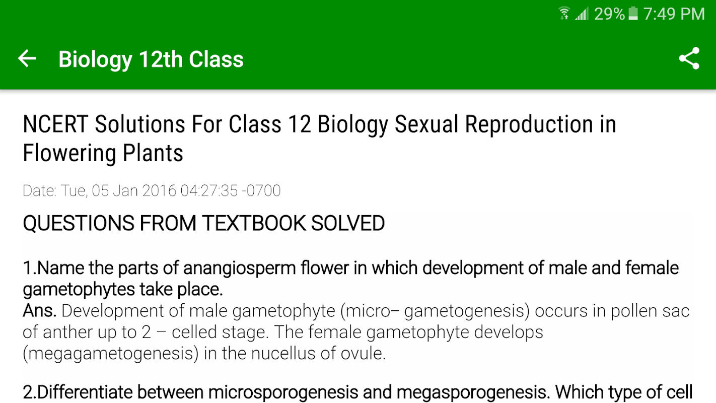 Class 12 Biology Notes - app is specially designed for the NCERT class 12 students to help them prepare for their examinations in Biology. This app having NCERT syllabus Biology Class 12 Notes can be useful in two scenarios - To verify your answer after you solve the exercise problems and other one is Check the solution when you stuck.