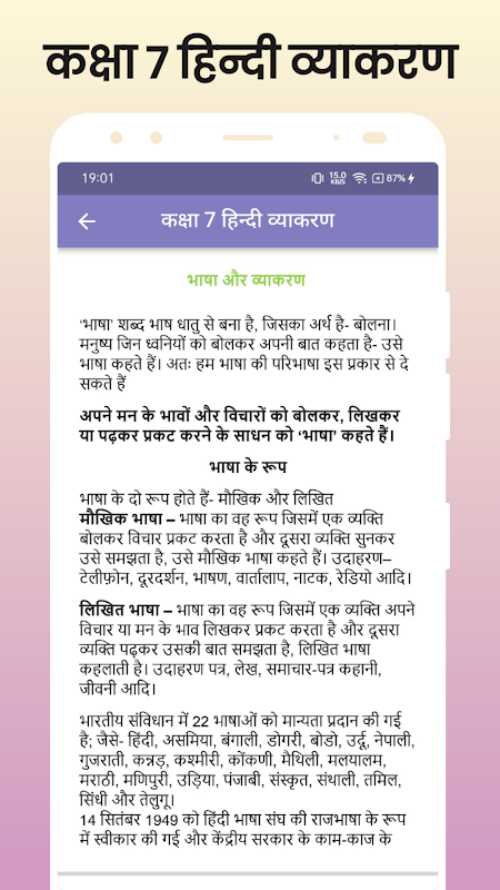 This app is aggregate of class 7 Hindi Grammar Vyakaran solution in most systematically way. It will help in quick revision if you liked our app. Please rate us.