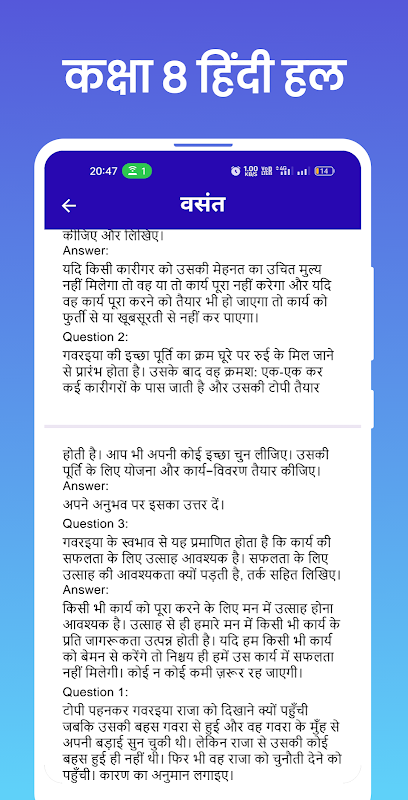 This app is aggregate of class 8 hindi solution in most systematically way. It will help in quick revision if you liked our app. Please rate us.
