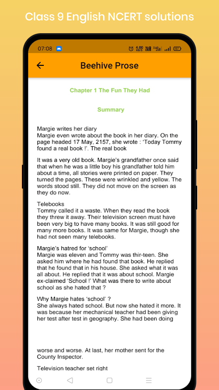 This app is aggregate of chapter wise solution of class 9 english textbook in most systematically way. It will help in quick revision if you liked our app. Please rate us.