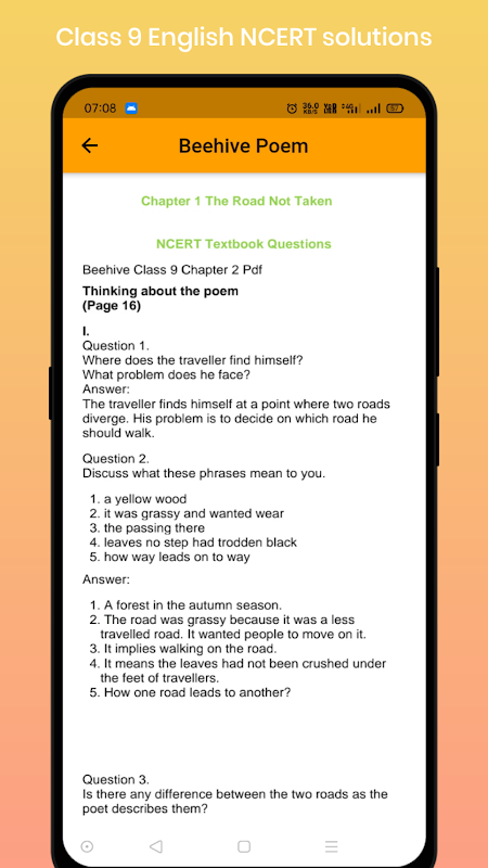 This application contains class 9 english NCERT Solutions Chapter wise with summary and question & answers. This application contains class 9 book Beehive solutions. This application contain 2 section of class 9 english book and 21 chapters of the book. I think this app is must have app for class 9 student.