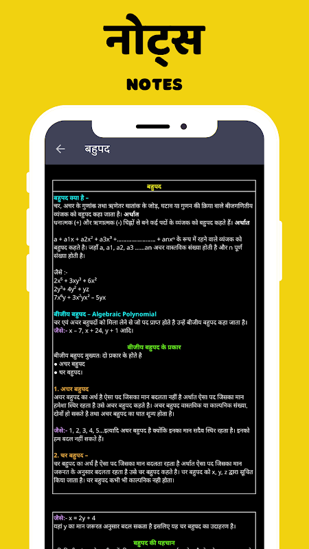 This app provides solution In Hindi of all chapters of class 9th NCERT Maths Textbook. This app is very easy to use. You have to just know the chapter and exercise number to find the solution in few click.