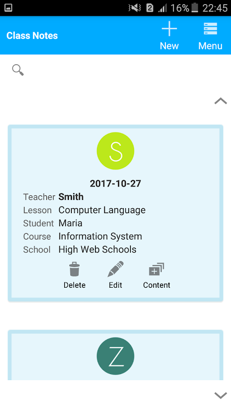 With this application you can register the content of your classes separately by date, teacher and discipline.