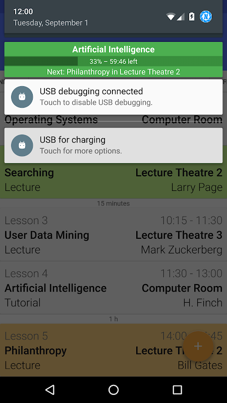 • the name of your next class, it's location, type and teacher