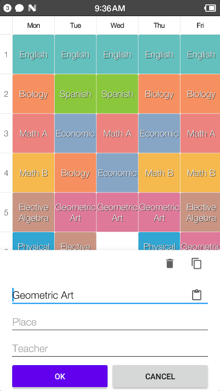 * Customize course time and teacher name