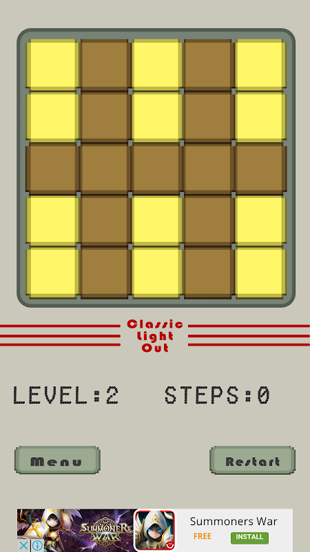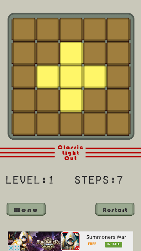 Still remember the old electronic puzzle game? ClassicLightOut is a recreated 5x5 light out game with 25 levels. It is a good time for you to have a taste of the hot game in the old days.