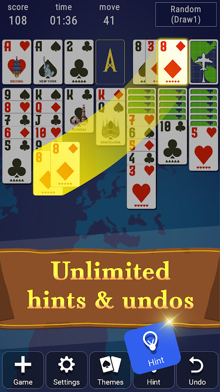 There are 3 card faces, 2 card backs, 3 backgrounds and so on for you to change. Personalize themes to suit your taste in Solitaire Classic: Klondike Card Game.