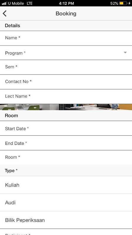 Class Reservation Mobile Application system is an android mobile application that helps the student and staff to reserve a classroom. The system must have a database which contains the user information, it must be able to accurately give the class information such as the timetable and also have a nice interface to make it easier to use.