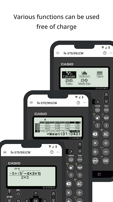 Through this app, users can use a wide range of ClassWiz functions with ease. This includes statistical calculations, spreadsheets, matrix calculations and graph display functions through ClassPad.net connectivity.