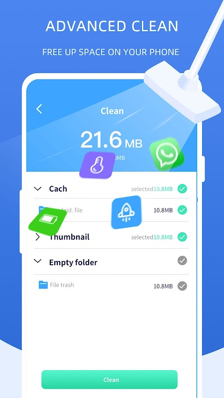 Phone cleaner is here to clean cache files, RAM, etc. in your phone. This cleaner can free up more space, boost your phone speed & performance,This is an automatic cleaner by setting up clean time to clean your phone in time