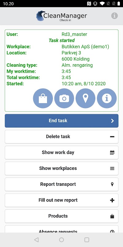 Your employees and inspectors can also fill out reports, request absence, order cleaning products to the various workplaces through the app as well as attach photos as documentation for ongoing tasks.