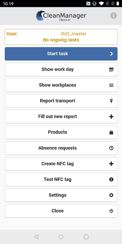 Smart app for the cleaning company - time tracking and control using NFC tags.