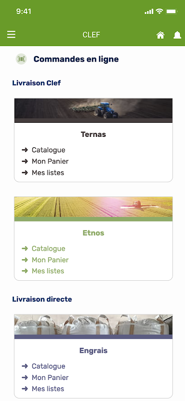 The mobile application of the Clef purchasing center, an agricultural trading network