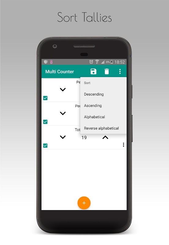 * Sort tally counters in, ascending, descending, alphabetical and reverse alphabetical order.