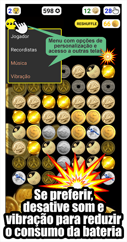 Tap the coins to get a lot of points