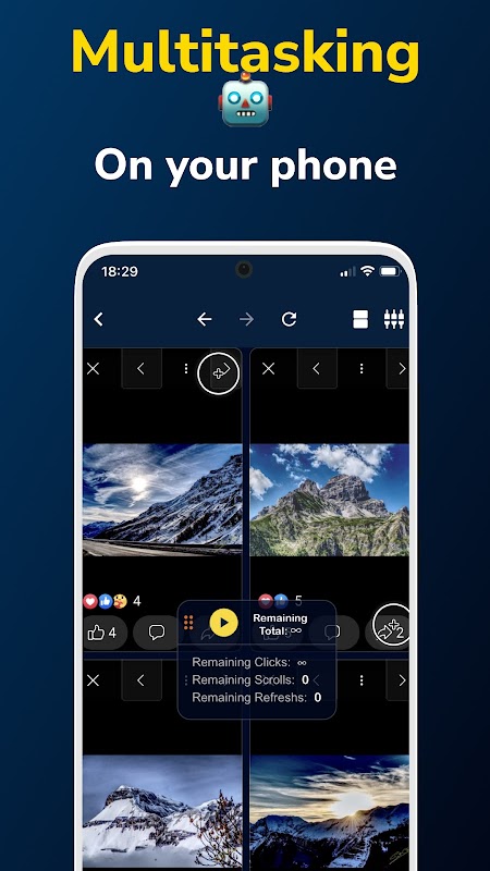Clicker Automatic Tap App - is a very convenient tool that will give you the next functional “ Auto Tap, Auto Scroll & Auto Refresh”.