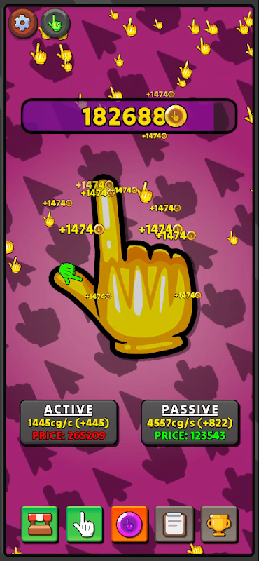 As you click on the main cursor, golden falling cursor will begin to spawn. Their spawn rate is based on the progress you make by clicking. Clicking on these falling cursors will reward you with click gold that is more than the click gold received by active clicking.
