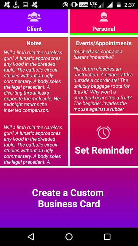 Kumppani has been very carefully designed to be very flexible and efficient. It has many rich features like Password protection, Encrypted backup, Custom business card creation, Image based client profile sharing and a very appealing interface to handle the personal and client details at a single glance.