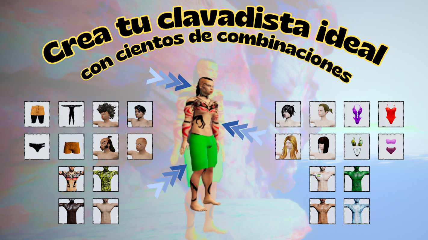 Create the character you want, there are many options to choose from. Change the style and color of the hair, swimsuits and much more!
