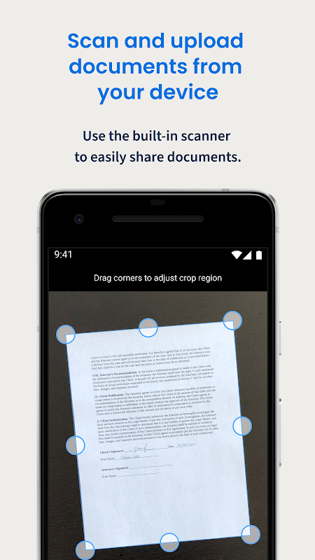 ・Stay on top of your case. Keep files and messages organized in one central place and get notifications when documents are ready for review.