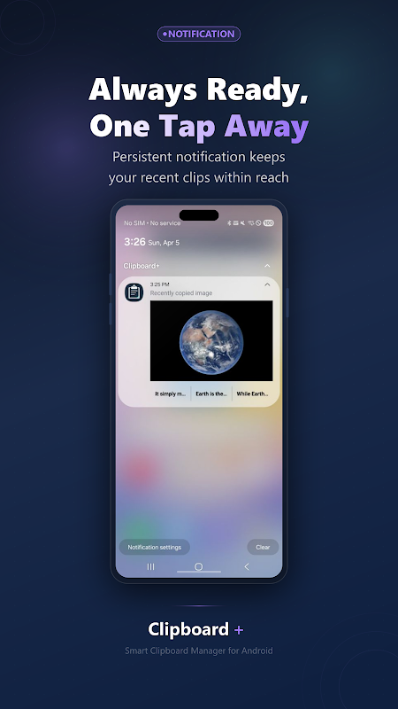 Recent copies appear in your notification bar for lightning-fast paste without opening the clipboard manager.