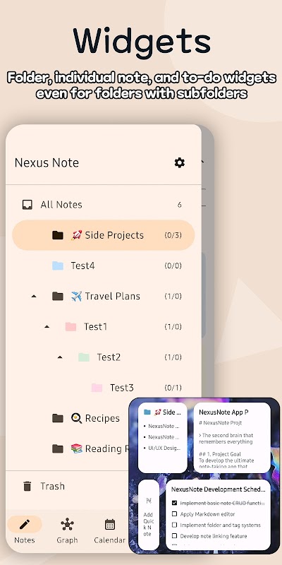 Access your crucial information without opening the app. Create custom widgets for a single note, a folder, your to-do list, or even to quickly copy content for your next paste.