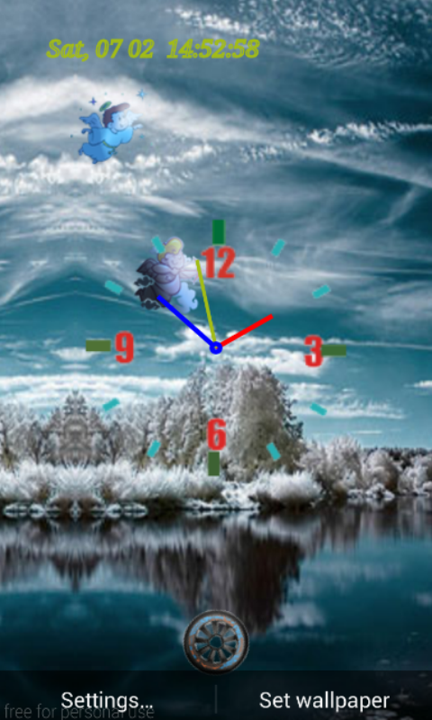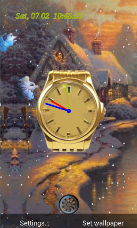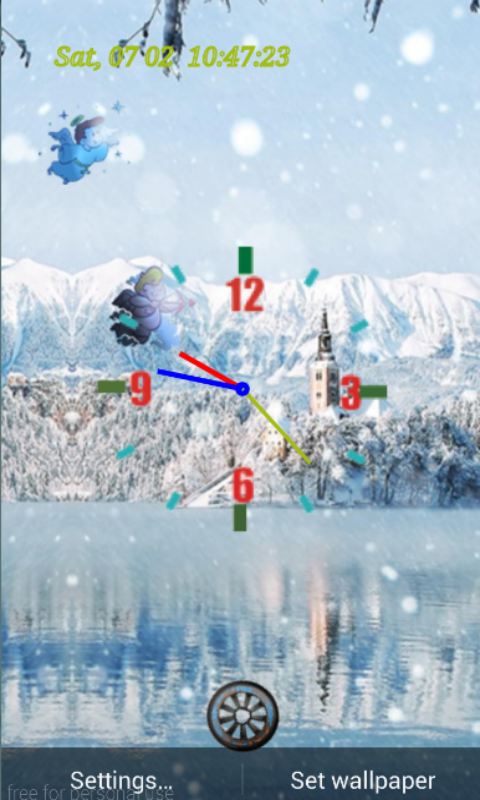 Cool winter live wallpaper with digital and analog clock, with this app you can set up your live wallpaper with Cool winter scenery and 3D or 2D clock, you can also have digital clock with today calendar - daily calendar appear on your screen. There are beautiful and very impressive, attractive landscape of winter view for you to choose for your live wallpaper background together with 2D or 3D clock, it look like 3D gold watch. This cool winter landscape is endless moving with white snow, pine tree and clouds or sunshine above, this is splendid of live wallpaper. You can also have flying objects it look like angels flying through your screen over and over. At your screen bottom you can sea rotation wheeling objects which wheeling rotation on your screen. With this app you could have a fresh look on your screen on hot summer day. Thank you for download and wish you enjoy