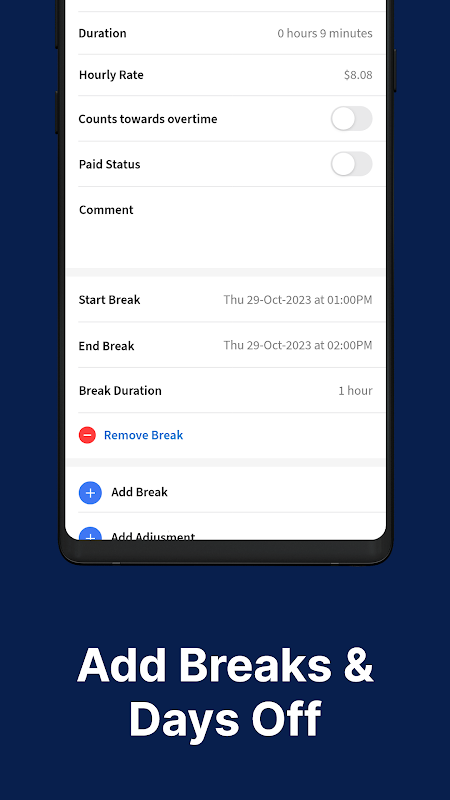 • Save time and maintain accuracy with a timeclock automatic hour tracker.Turn-ON/OFF as you see fit, or adjust when it'll activate.