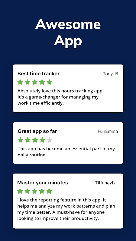 • Stay organized by keeping work hours tracker handy, track of work hours and seeing reports by pay period, weekly or monthly