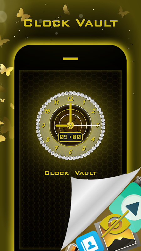 Hide Photos, Video Locker app & photo hider Gallery Vault app that lets you hide pictures and personal picture lock and photo hider albums or secret videos behind secret clock. clock vault look like simple clock with the naked eye but has a secret gallery vault behind it.
