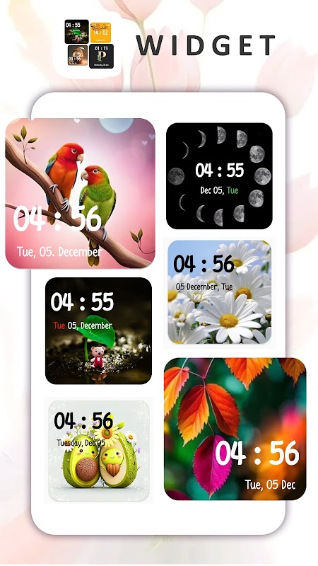 Clock Widget - Digital Clock is a Elegant widget for your smart phones Enjoy personalizing your home screen with this Digital clock Widget. Please tap on the widget to change a clock design. More Then 200+ Widget Design Waiting For you.
