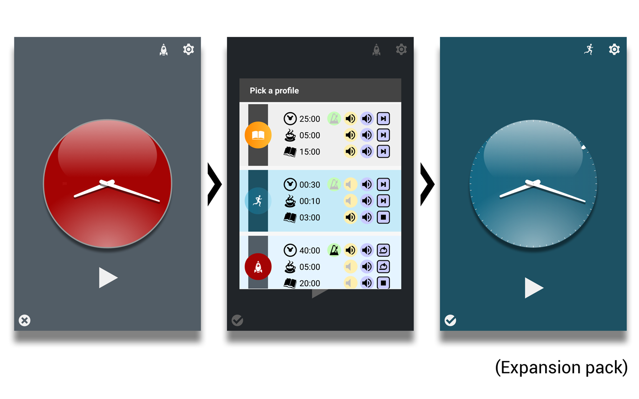 • Fully configurable: timers, behaviour, colors, sounds, style, and more than 50 options.