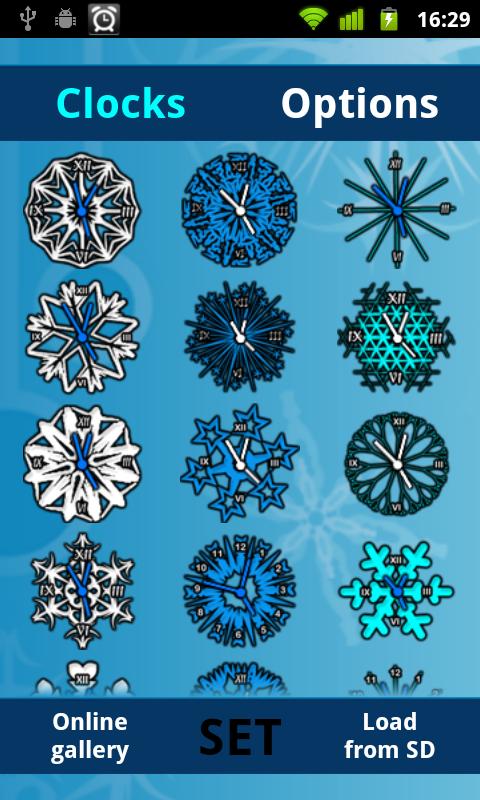 150 Different Snowflakes styled Analog Clocks Widget for your Android phone.