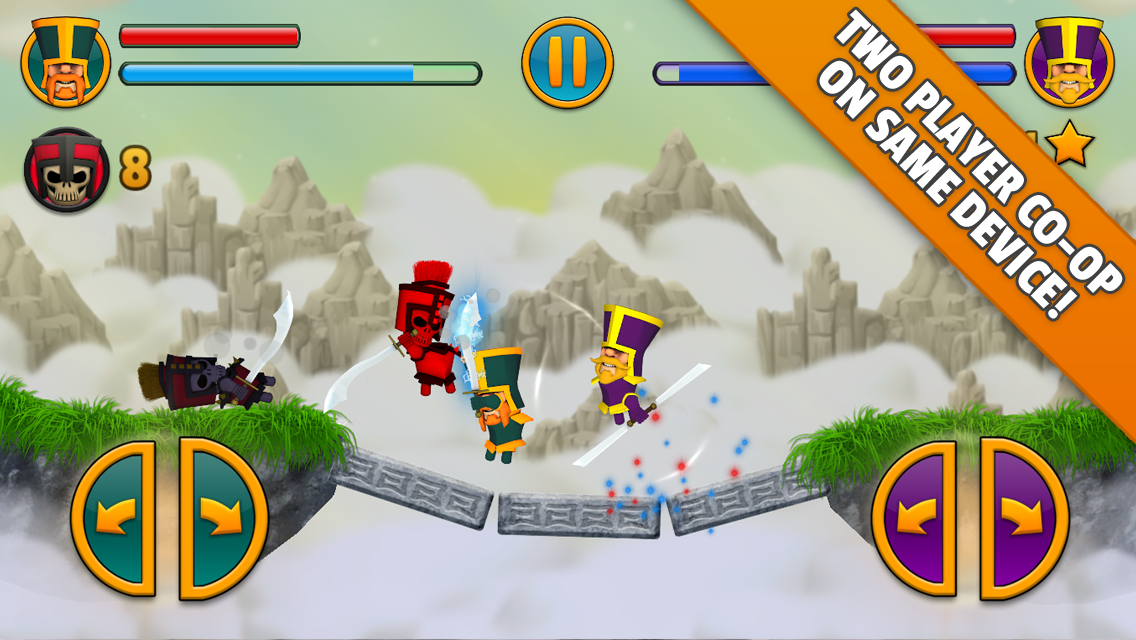 Cloud Knights is a physics-based action game with an epic fantasy adventure style. It has unique and easy controls, allowing the player to move and fight by simply swinging their weapon. It can be played by up to two players on the same device. Any unlocked campaign level can be played in both single player and co-op mode. The game also includes a dueling mode, which lets players fight each other or play against a CPU-controlled knight.