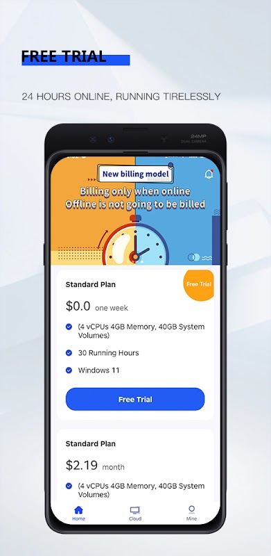 Cloud PC is a cloud computing tool that allows you to easily have a Windows computer on your phone, which can run 24 hours a day online and never shut down. As long as you have the internet, you can work, learn, and start businesses in the cloud anytime, anywhere. Recent hotspots: 【 New employee benefits 】:Cloud PC can be obtained for free boot time. Cloud hard drive: A cloud mobile hard drive that can download, install, and save personal software, games, documents, data archives, etc., and the data can be permanently saved, supporting hot expansion. [Suitable scenario] Remote operation and maintenance monitoring, learning programming, cloud based office, self media operation, store operation, and community operation. High performance configurations can be used for stock trading, game development, and artificial intelligence development. 【 Easy to operate 】 External keyboards such as keyboard and mouse converters or OTG conversion lines can be used for more convenient operation.