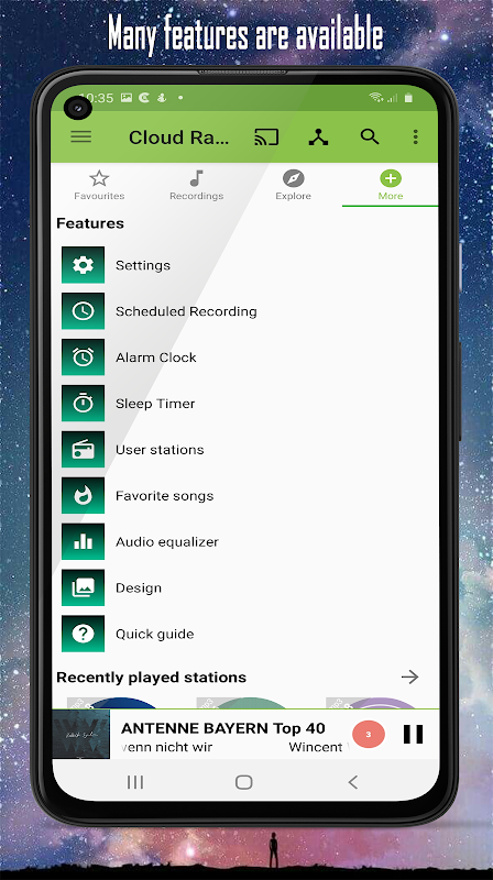 Cloud Radio offers many nice features to enjoy listening to Internet radio: