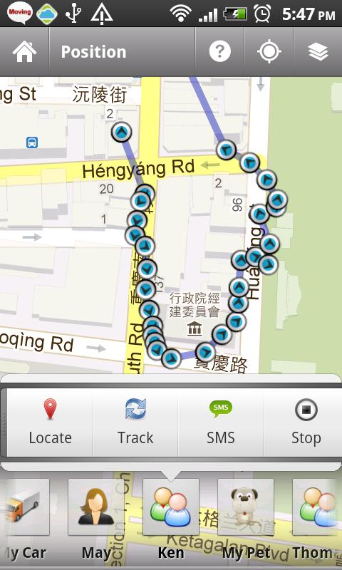 The Cloud-Tracker APP is the first GPS tracker APP adopting ‘C2MD (cloud to mobile device) Push Message Technology’. Unlike the conventional SMS (text message) position method, the Cloud-Tracker’s real time location is pushed directly to this APP. The route is recorded continuously, not fragmented. You can view the real time location and routes of Cloud Tracker devices from this APP.