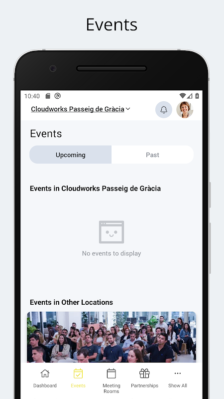 La Cloudworks App permite a sus miembros conectar con nuestra Comunidad, reservar salas de reuniones y mantenerse al día de nuestros eventos y actividades.