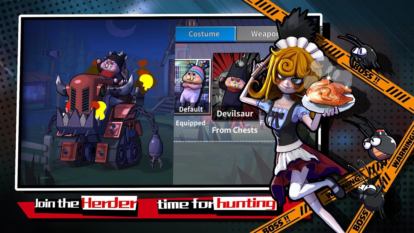 The current roster includes some ten characters: the fried chicken shop owner Leon, the lovely little girl Rita, the maid Kelly, Egg-a-fowl, Time Fowl and more! There are also dozens of fancy skins for you to unlock and use, each one transforming you into a dazzling peacock!