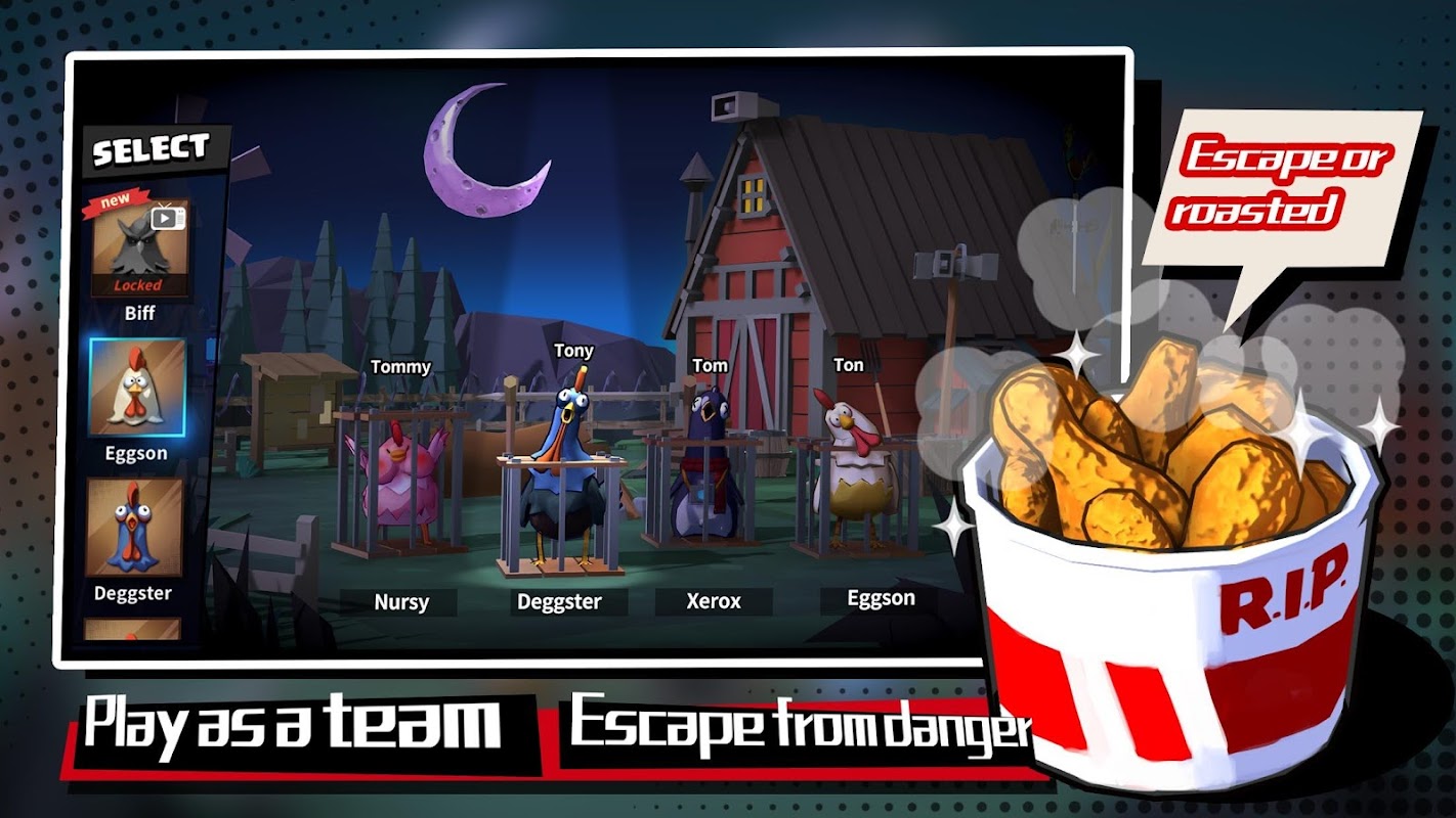 4v1 real-time competitive gameplay! In order to escape and attain their freedom, the running fowl must destroy energy generators to open the No-Harm-No-Fowl Gates. The fowl herder, however, has a different objective: to catch the little pests and roast them for a great chicken dinner. Who will stand victorious once the sun rises?